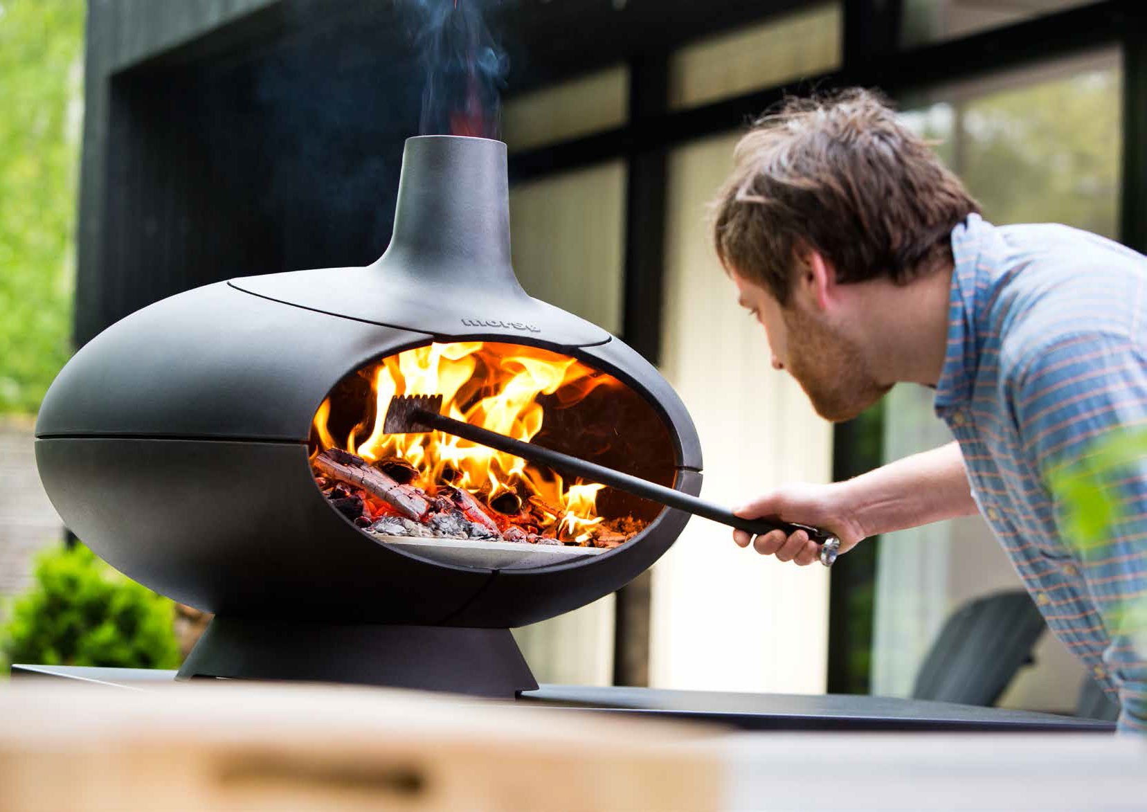 Push the fire from the middle of the forno back to the edges of the stove in a semicircle, fire up a few small sticks to spread fire over the roof of the stove, and then blow any ashes away from the middle. Now place the pizza in the middle of the forno where the fire was before, with approx. 10 cm clearance to the embers.