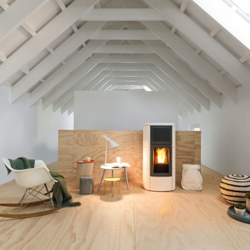 This stove is available in the AIR and COMFORT AIR® versions to carry the warm air into other rooms. This stove features a large, natural flame, weekly-emptying ash pan and ceramic ignition plug for quick three-minute ignition.