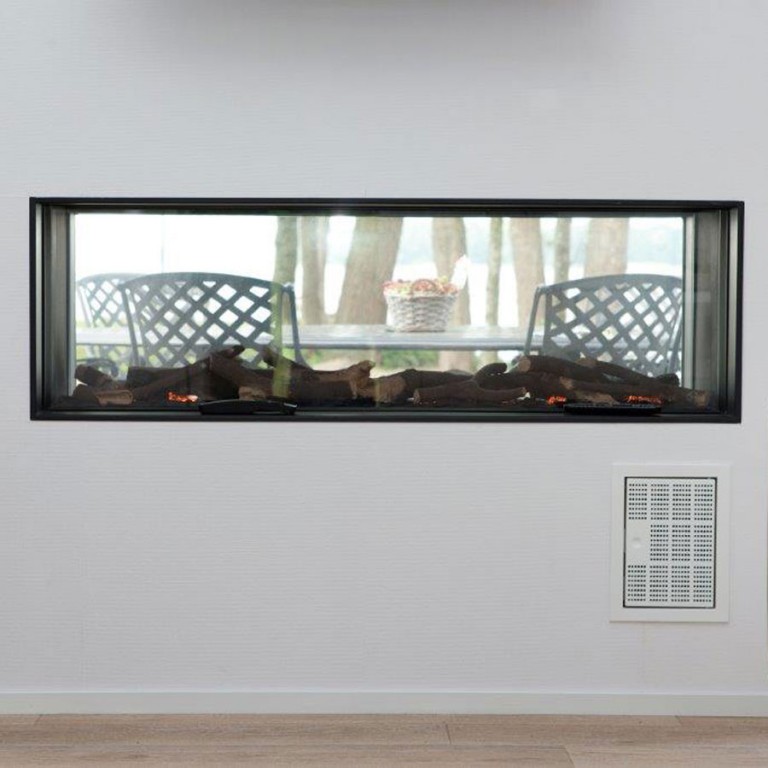 This large, stunning gas fireplace has a double burner which gives a beautiful, realistic flame at all levels. The unique, clean design of this tunnel fireplace creates a magical effect by giving you a view of the fire from two sides It can be enjoyed in various ways such as a room divider or a feature visible from a patio or terrace when opting for the indoor/outdoor versions of this stove.