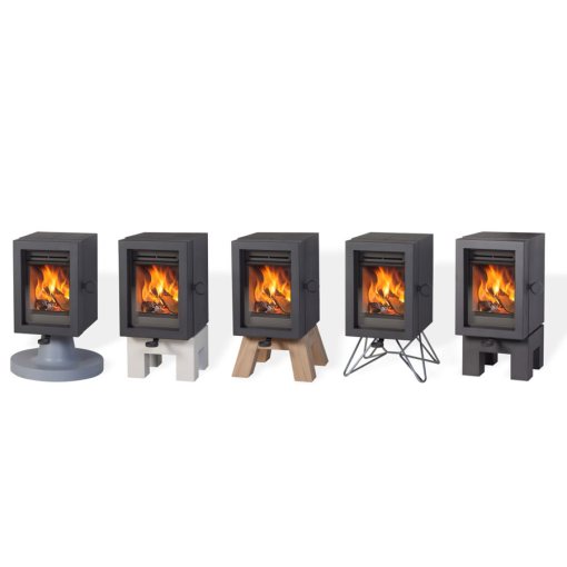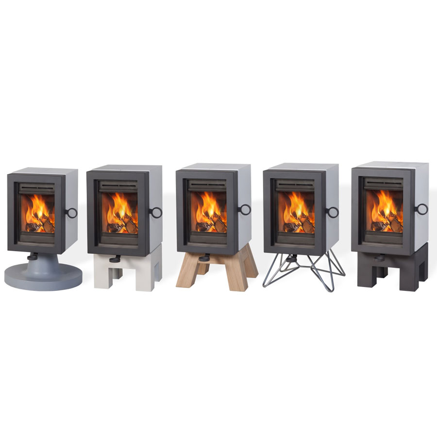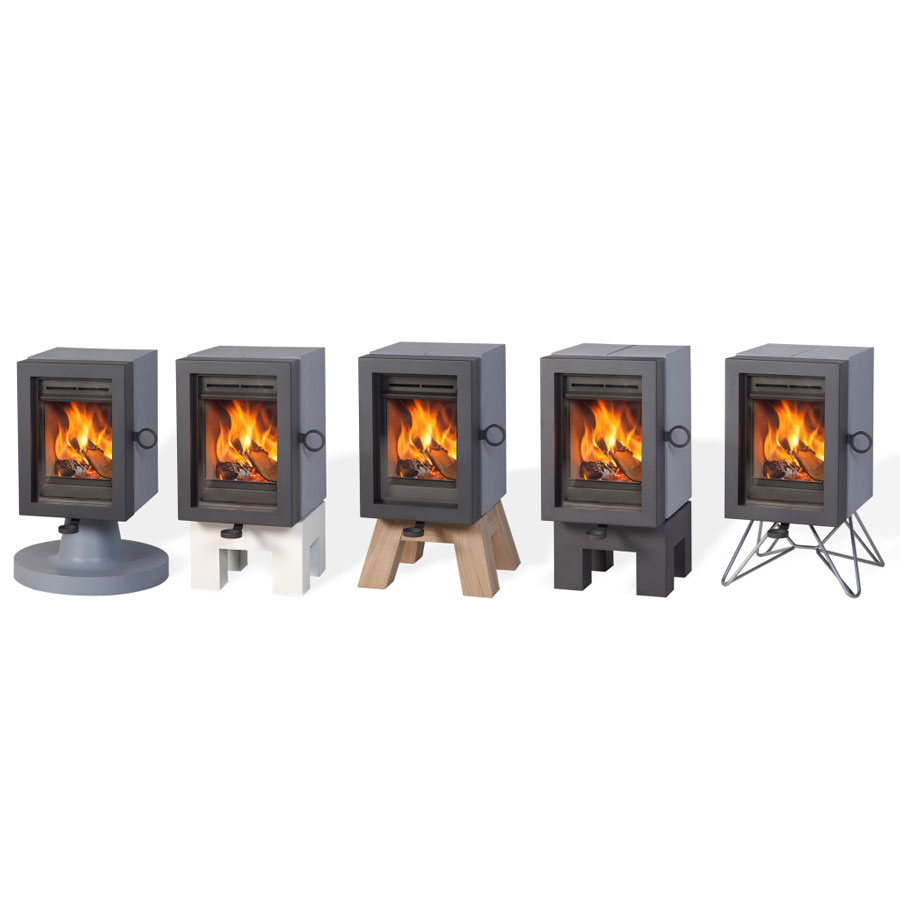 The Wanders Oak wood burning stove comes in a variety of options. You can choose a cover in grey or white concrete or black steel. There are also five pedestals to choose from for this wood burning fireplace; industrial wired look, wood, black or white steel or grey concrete.